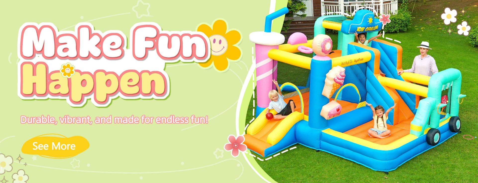 Founded in 2019, AirMyFun started with a simple idea: to design bounce houses that inspire play and imagination. Over the years, we have grown into a trusted brand, known for our commitment to safety, quality, and customer satisfaction. Our product range includes home bounce houses, swim rings, water inflatables, and more, all designed to enhance family playtime and support children's growth.